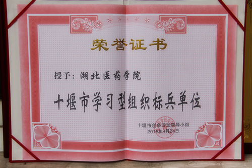 会上表彰了一批“十堰五一劳动奖状”、“十堰市五一劳动奖章”和“十堰市工人先锋号”。湖北医药学院被授予十堰五一劳动奖状和“十堰市学习型组织标兵单位”。工会常务副主席马兴国代表学校与会领奖。