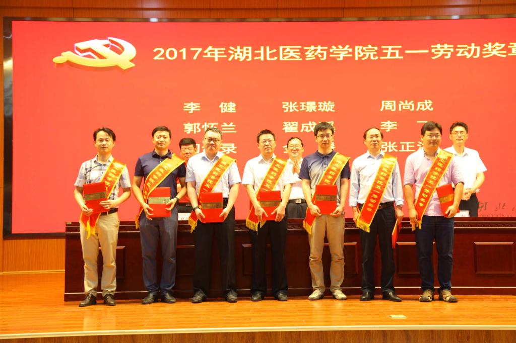 6月29日上午,在全校思政工作会议上,校领导涂汉军、李和、赵鹏飞、严世荣为李健、刁红录等十位五一劳动奖章获得者颁奖。
