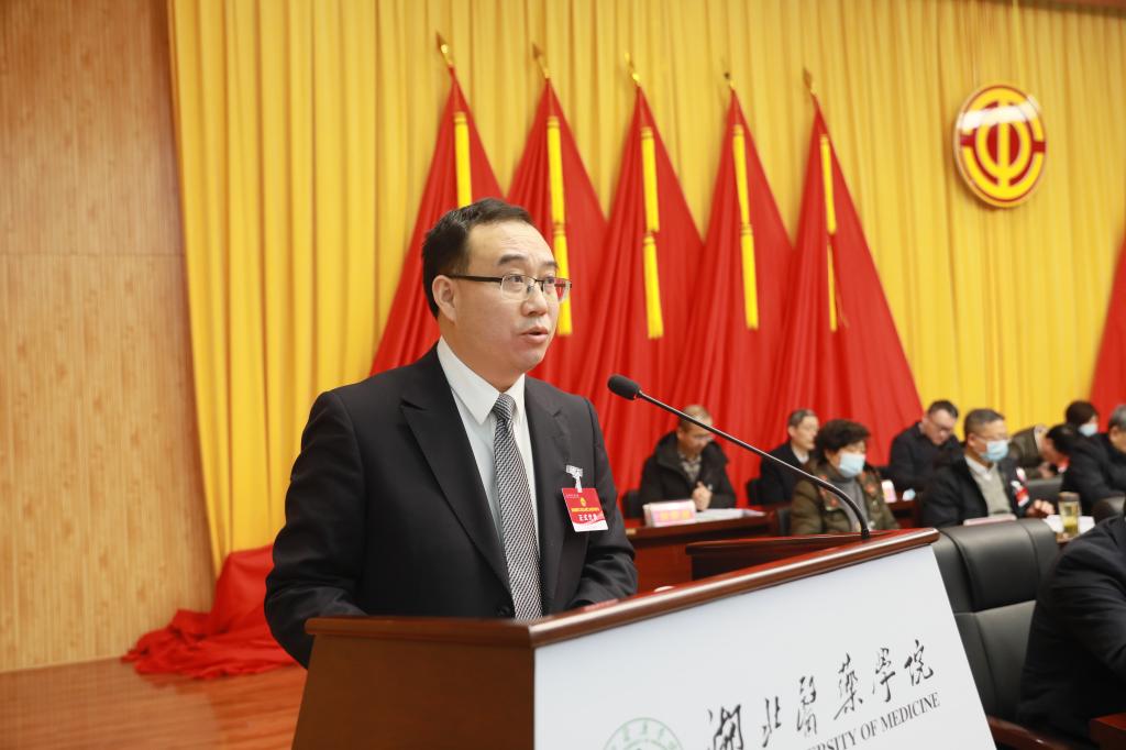 党委副书记、校长李和代表学校行政向大会作题为《立足新阶段展现新作为为开创学校高质量发展新局面而不懈奋斗》的工作报告。李和指出,2021年是“十四五”规划的开局之年,是学校建设湖北医药大学的重要之年。在校党委的坚强领导下,全校上下以习近平新时代中国特色社会主义思想为指导,全面贯彻党的教育方针,着力加强内涵建设,推动第二次党代会精神落地落实,实现了“十四五”事业发展良好开局。