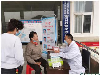 眼科专家许玲主任医师,第一临床学院副院长、普外科专家王明华主任医师,骨科专家王刚主任医师三位盟员热情接待了蒿口村就诊村民,仔细询问相关病情,耐心解答病症预防、治疗和用药等注意事项。此次义诊活动共接诊100余人次,根据诊断结果免费发放药品价值近2000余元,专家们精湛的医术和热情的服务得到了蒿口村村民们的一致好评。此外,民盟湖北医药学院支部还向蒿口村捐赠了一批一次性口罩、消毒酒精等防疫物资以及由民盟中央发放的《新农村卫生健康手册》。