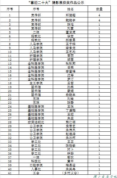 根据《关于举办“喜迎二十大 建功新时代”教职工摄影大赛的通知》精神,经各分工会组织参赛,评审组评选,现将获奖作品公示如下(详见附表)。
