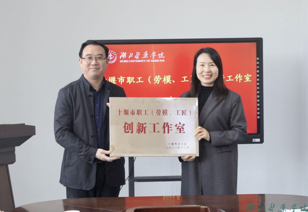 本网讯(文/柯琴 图/刘莹)11月15日上午,十堰市职工(劳模、工匠)创新工作室——“药”先行劳模创新工作室授牌仪式在科教楼药学科研平台举行。校党委副书记、校长王云甫,校党委常委、统战部部长谭艳、校工会常务副主席袁文、药学院院长李飞及“药”先行劳模创新工作室团队全体老师参加了活动。活动由袁文主持。