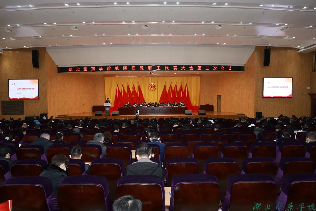本网讯(文/鲍晓宇 图/袁文 聂秀 牛佳 赵国新 胡洁 陈立 刘寒梅 肖飞 白宝鑫 洪敏 鲍晓宇)2022年12月29日14点30分,湖北医药学院第四届教职工代表大会第二次会议召开,300余名教职工代表在科教楼学术报告厅齐聚一堂,为早日建成高水平有特色的湖北医药大学建言献策。党委书记涂汉军,党委副书记、校长王云甫,党委常委、副校长李云霞、严世荣、罗杰,党委常委、统战部部长谭艳,党委常委、组织部部长张海蛟出席会议。大会由涂汉军主持。
