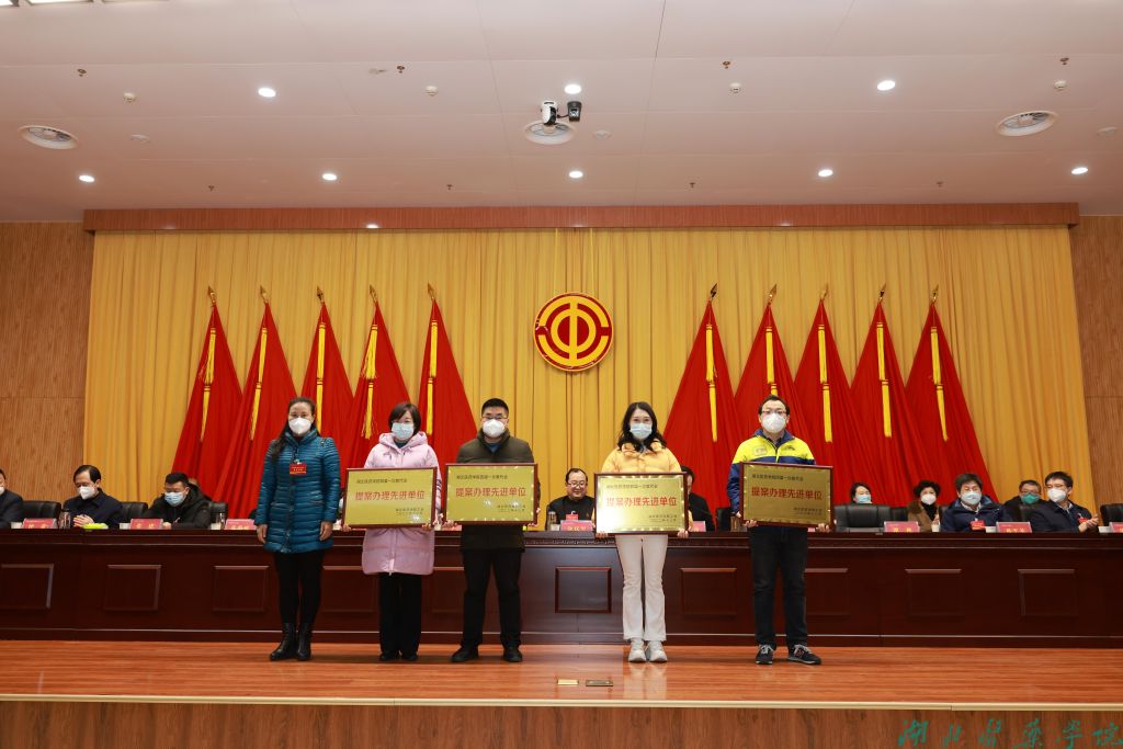 党委常委、统战部部长谭艳为提案办理先进单位党政办、工会、组织部、教务处颁奖。