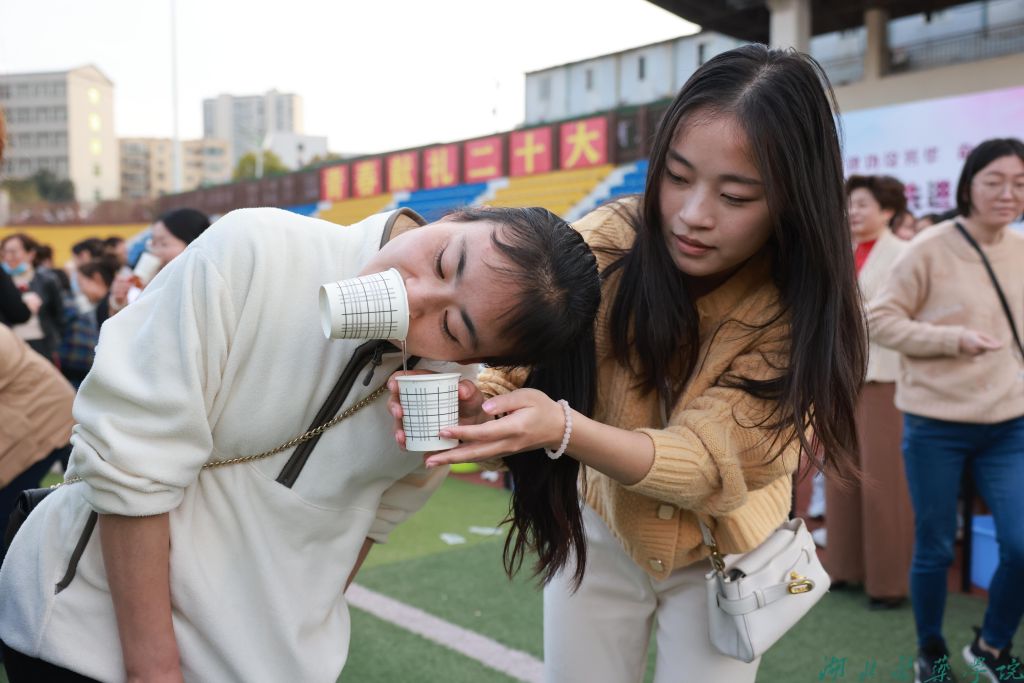 随后,屡获国赛省赛桂冠的啦啦操队员们为大家带来激情飞扬的啦啦操表演,趣味运动会也正式开始了。比赛项目共有三个:一是勠力同行(绑腿跑),二是众志成城(纸杯传水)、三是齐心协力(集体跳绳),齐心协力、团结一致,感受着比赛的紧张与乐趣。