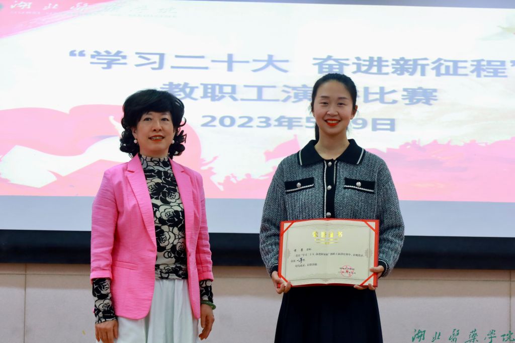 党委常委、组织部部长张海蛟对本次比赛进行了点评。整个活动各环节紧凑有序,每个选手精神饱满,实力在线,挥洒自如,充分体现了“组织有序、选手有才、后继有人”,勉励大家在今后的学习工作中,要深学细悟笃行党的二十大精神,作为湖医药的未来更要立足岗位、练好内功,为学校的发展深耕细作、奋斗前行。