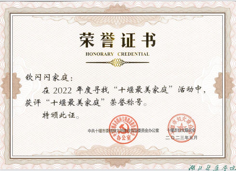 我校钦闪闪李丹丹家庭获评2022年“十堰最美家庭”