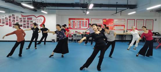 来到离退休职工活动中心,舞蹈班的老同志正在这里开展今天的课程,李云霞向离退休老同志致以亲切的问候,对老同志排练取得成效给予肯定,希望老同志们保持身心健康、乐享美好生活,嘱咐他们要根据自己身体情况参加课程,并祝愿老同志们身体健康、家庭幸福,退休生活丰富多彩。