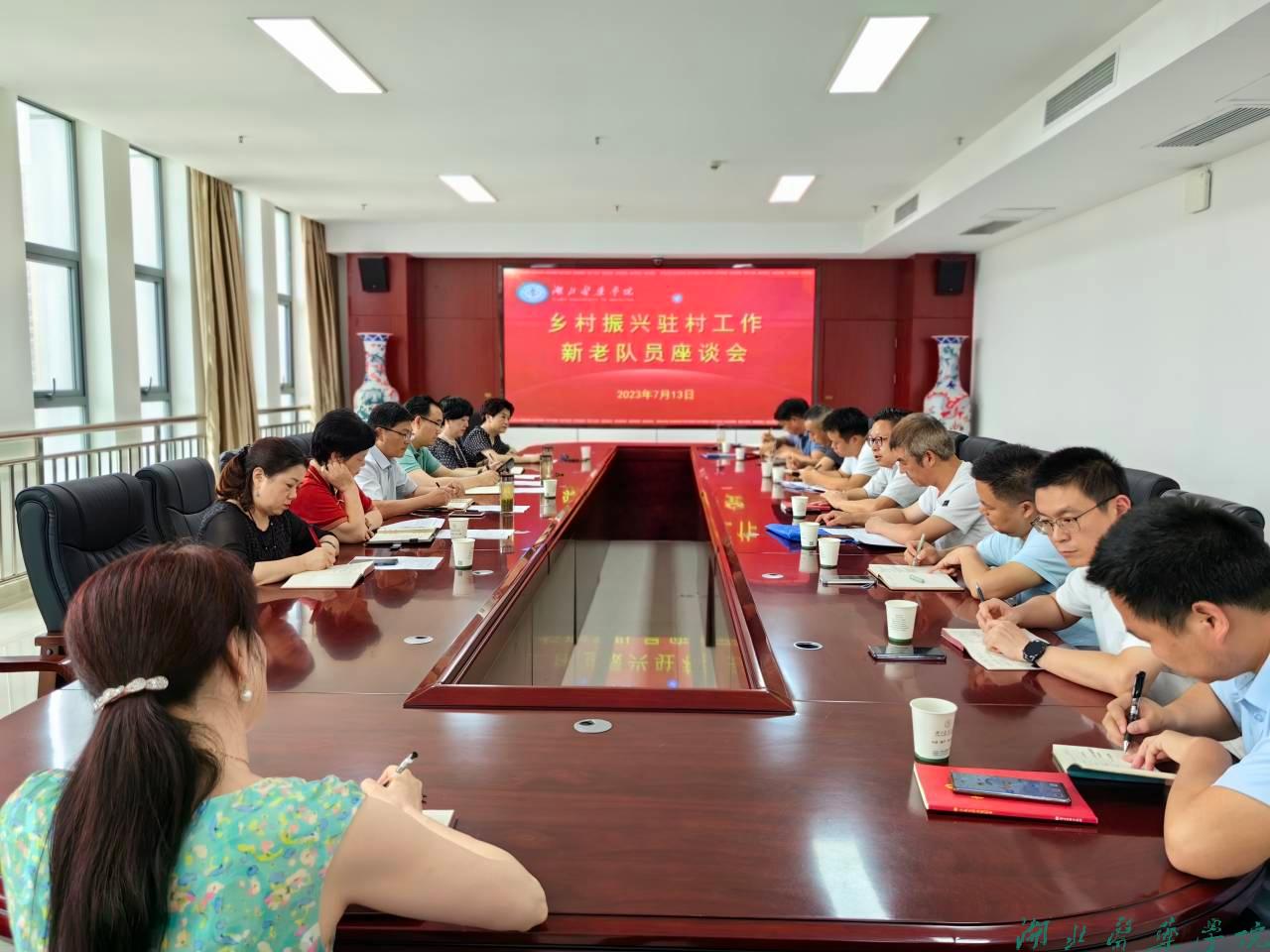 本网讯(通讯员 柯琴)根据省委组织部《关于做好驻村第一书记和工作队员有序轮换和持续选派工作的通知》要求,湖北医药学院、湖北医药学院药护学院完成了新一轮队员的遴选工作。7月13日,学校在科教楼1708会议室召开乡村振兴驻村工作新老队员座谈会。党委副书记、校长王云甫,党委常委、副校长李云霞,党委常委、组织部部长张海蛟出席,校工会常务副主席袁文、药护学院党委书记党萍、财务处处长程荣以及学校乡村振兴工作队新、老队员参加。座谈会由袁文主持。