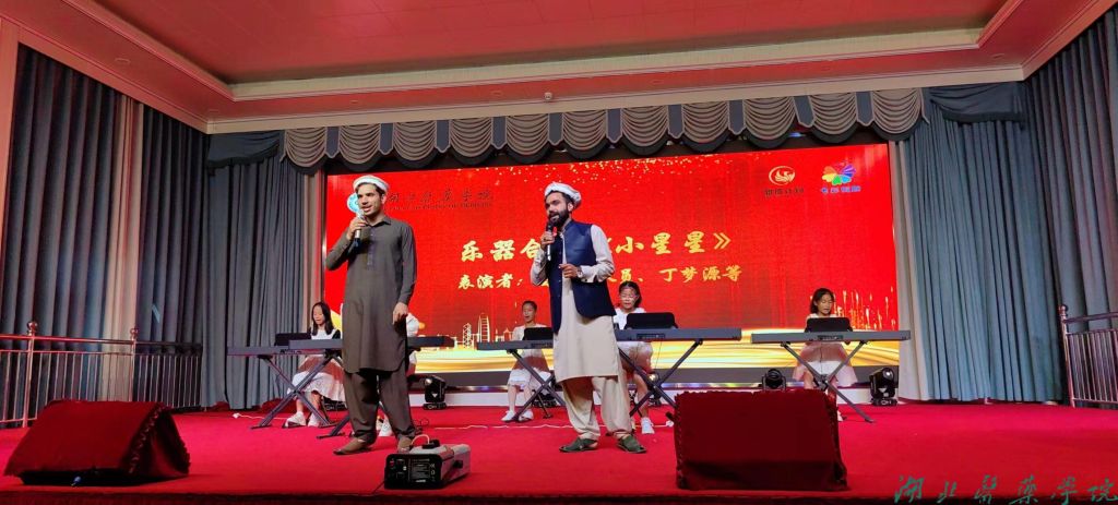 带领学生实践队,共同缔造送文艺。今年,湖北医药学院“雏鹰计划”暑期社会实践队继续驻扎县河镇中心学校,15名本科生及2名巴基斯坦留学生与一百五十七名中小学生同吃同住同实践,开趣味运动会、绘青春水彩画、讲健康与安全,收获友情,获得成长,用“七彩假期”点亮竹溪孩子们的暑假生活。张海蛟与暑期社会实践队队员亲切交谈,关心他们的生活起居,尤其对两名留学生的表现给予了充分肯定。随后,大学生和中小学生一起开展“学习二十大 永远跟党走 奋进新征程”社会实践汇报展演,用歌曲、舞蹈、乐器演奏、朗诵及走秀等节目将此次暑期社会实践活动推上高潮。