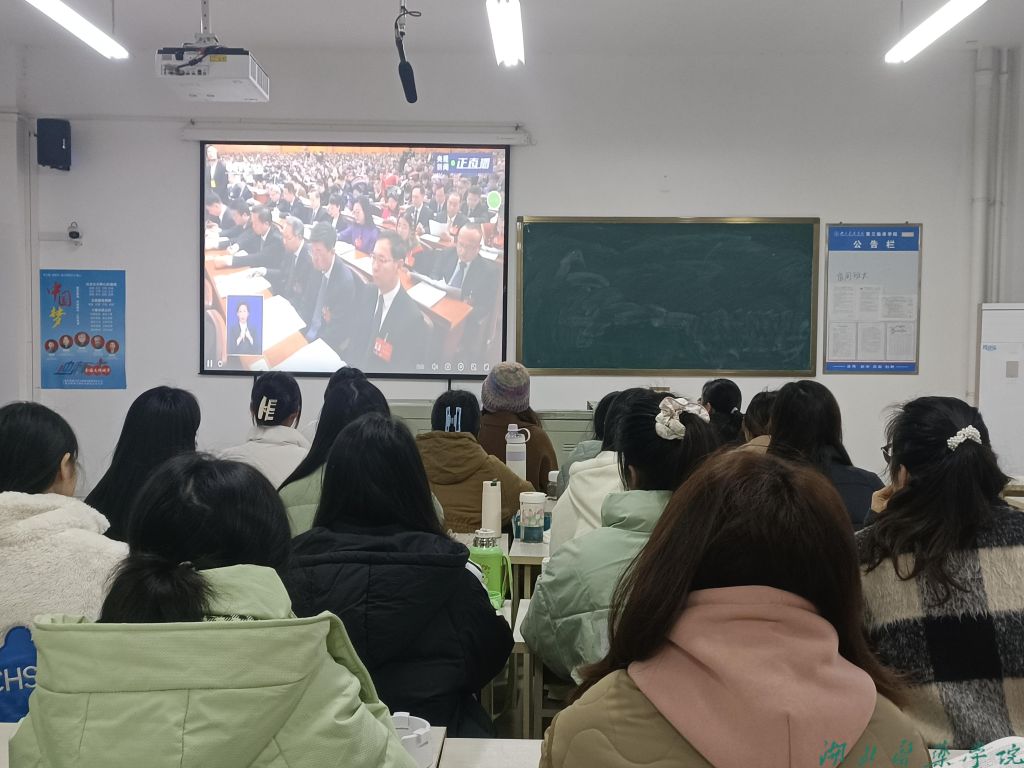 马克思主义学院、人文社会科学学院教工第三党支部书记聂淼:全国两会发出高举旗帜、真抓实干、团结奋进的强音,鼓舞亿万人民更加紧密地团结在以习近平同志为核心的党中央周围,顽强奋斗,把中国式现代化的美好图景一步步变为现实。国将兴,必贵师而重傅。在全国两会发出最强音的背景下,高等教育应乘势而上,迈向高质量发展新阶段。基础医学院生理教研室主任吴艳:李强总理在政府工作报告中提出,深入实施科教兴国战略,强化高质量发展的基础支撑。加强高质量教育体系建设,增强中西部地区高校办学实力。湖北医药学院应乘势而上,全方位培养用好人才,推进高水平人才高地和吸引集聚人才平台建设,促进人才区域合理布局和协调发展,加强健康、养老等民生科技研发应用,助力高质量发展。