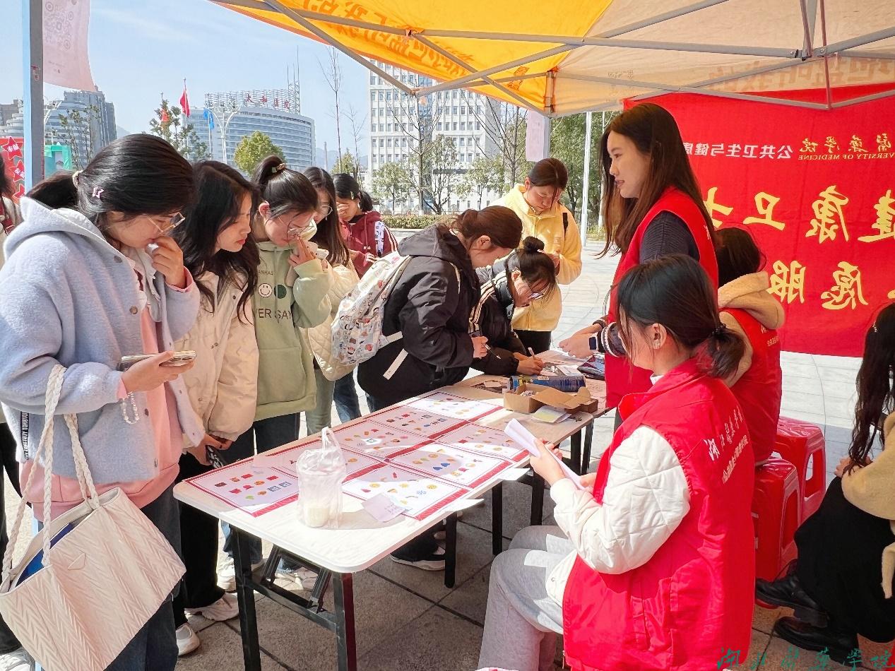 本网讯(通讯员 宋宇航)为庆祝“三八”国际妇女节,3月8日,公共卫生与健康学院青年志愿者协会及学生会分别以“颂扬巾帼风采,共筑时代芳华”和“巾帼她力量,逐梦新时代”为主题,在文明广场和精勤社区举办系列活动。