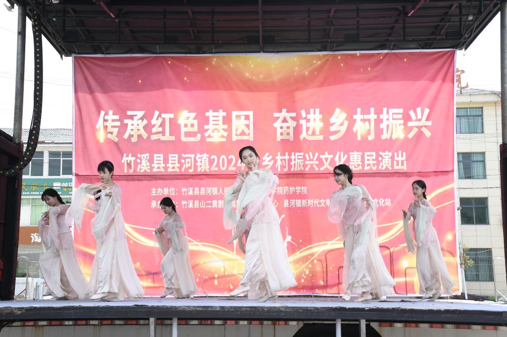 本网讯(通讯员 邱爽 杨紫涵)5月8日,由湖北医药学院药护学院驻竹溪县河乡村振兴工作队组织,校团委、县河镇政府、县河镇新时代文明实践所、文化站联合开展的“传承红色基因 奋进乡村振兴”送文艺下乡活动,在县河镇广场成功举办。湖北医药学院药护学院党委书记金志雄、竹溪县相关领导、驻村书记钱江和校团委师生参加活动。