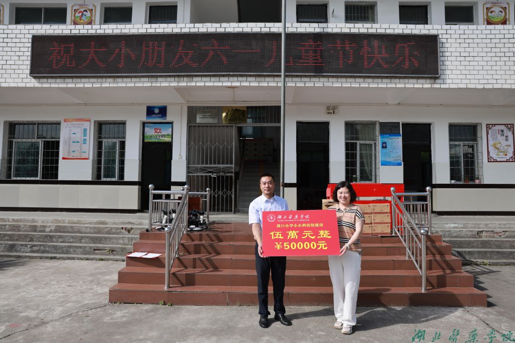 本网讯(文/马成忠 刘玉良 图/鲍晓宇)5月31日上午,湖北医药学院来到教育帮扶点——丹江口市六里坪镇蒿口小学,为该校捐赠五万元建设“小小科技馆”,捐献药物标本、14台显微镜等配套设施,为每一位小朋友们送上节日的礼物,护理学院爱心妈妈为帮扶对象送上爱心大礼包,共同欢庆国际儿童节。