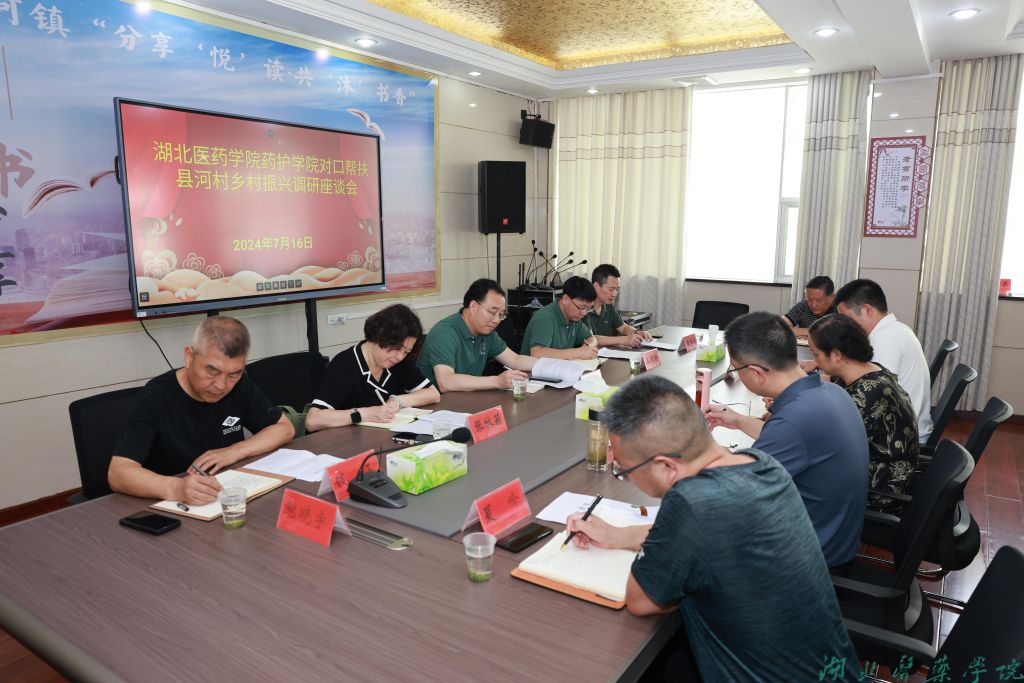 在县河镇二楼会议室,对口帮扶县河村乡村振兴调研座谈会召开。会议由县河镇党委书记罗猛主持。县河村党支部书记介绍县河村2024年上半年主要工作,学校驻村工作队第一书记钱江汇报2024年上半年驻村帮扶工作情况。