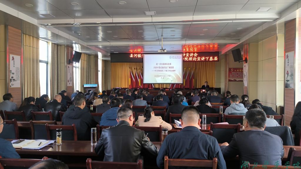 本网讯(通讯员 赵永全)10月28日,我校马克思主义学院副院长孙磊博士走进竹溪县县河镇开展党的二十届三中全会精神宣讲。县河镇党委班子、机关干部,村党支部书记,驻村第一书记、镇直单位负责人参加此次活动。