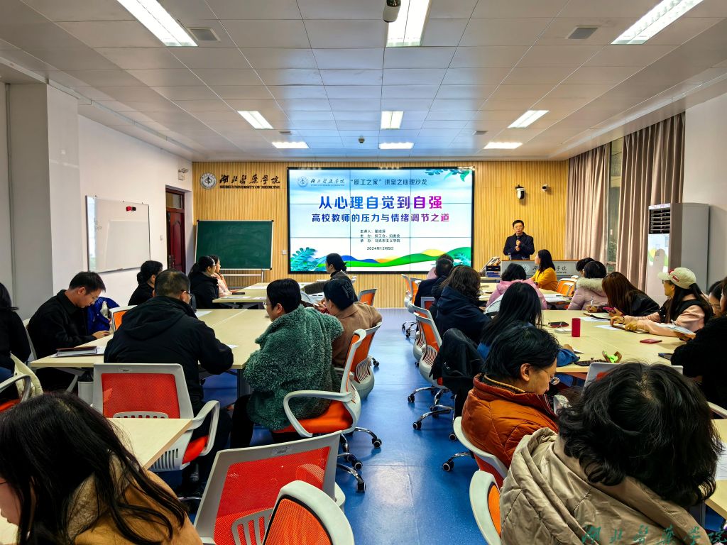 本网讯(通讯员 唐念东)健康的心理状态是高效工作与幸福生活的基石。为加强职工心理建设,释放和缓解职工工作和生活的压力,12月5日下午,学校开展以“从心理自觉到自强”为主题的心理沙龙活动。邀请马克思主义学院心理学博士、副教授翟成蹊主讲,学校各分工会无课教师近60人参加。