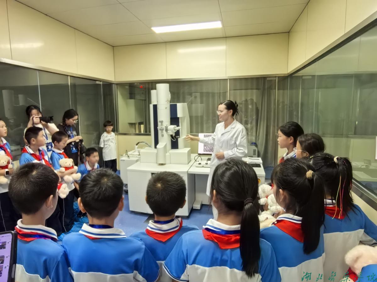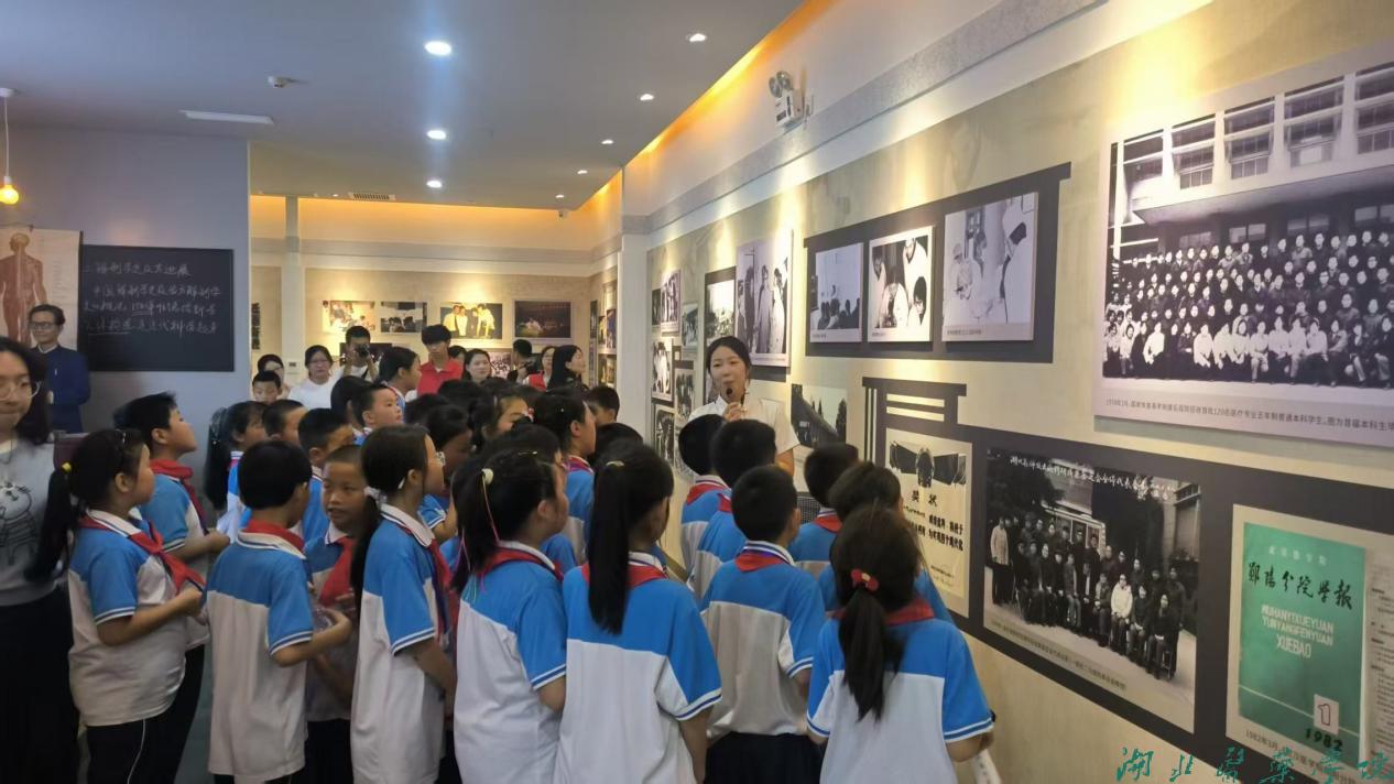 下午的行程聚焦医学与科学探索。在“雏鹰计划”社会实践队志愿者们带领下,参观了湖北医药学院校史馆、好人馆和名人馆,孩子们通过一张张泛黄的照片、一个个感人事迹,感受医学工作者“敬佑生命、救死扶伤”的职业精神和学校“艰苦奋斗、自强不息、厚德济世、励学育人”的湖医药精神。