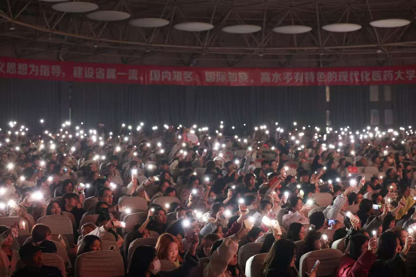 课堂还融入了舞蹈、音诗画、歌曲串烧等多元形式,生动演绎了六十年的风雨兼程与代代人的初心不改。当那些亲历并铸就六十年辉煌的身影登上舞台时,全场师生无不动容。师生们不约而同打开手机灯光致敬先辈精神,点点灯光汇聚成璀璨星河,照亮了现场,更照亮了传承之路。“这里有一群白衣天使翱翔,人世间汇聚那医学荣光……”课堂最后,全体师生齐声高唱《湖北医药学院校歌》。激昂的歌声既是对学校六十年荣光与担当的崇高致敬,更是全体湖医药人以奋进昂扬之姿,迈向新征程的豪迈宣言。