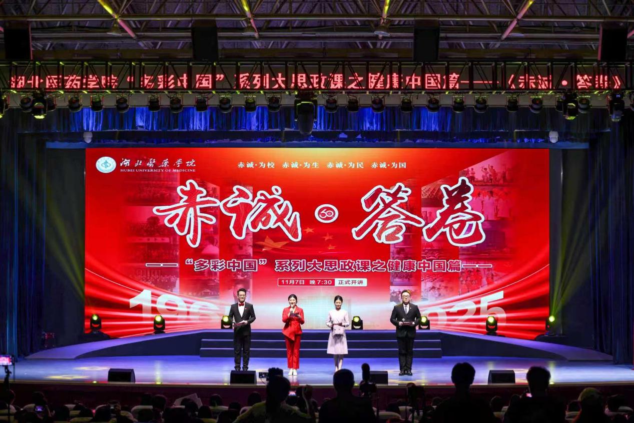 时值2025年11月8日湖北医药学院建校60周年之际,学校精心打造“多彩中国”系列“大思政课”之健康中国篇《赤诚·答卷》。课堂以文艺汇演为载体,将学校六十年的奋斗故事与思政教育深度融合,为现场数千名师生校友及线上1.2万余名观众,呈现了一场直抵心灵的精神洗礼。