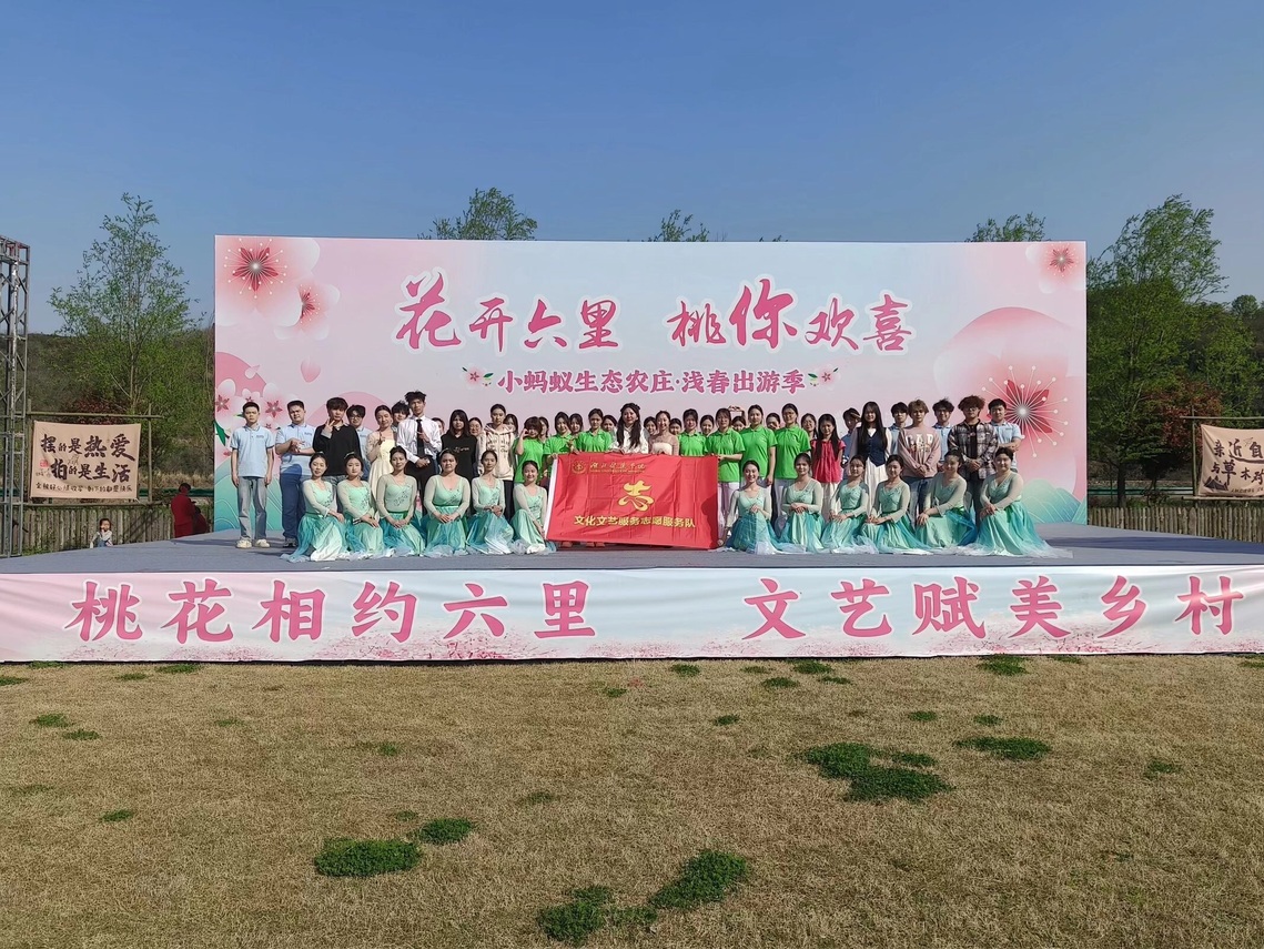 本网讯(通讯员 魏燕)3月28日至29日,我校乡村振兴工作点六里坪镇蒿口村“花开六里 桃你欢喜”小蚂蚁农庄游园会隆重举行。为深入推进文化下乡,丰富基层群众精神文化生活,我校文化文艺服务志愿队组织80余名师生应邀参演“2026花开六里 桃你欢喜”文艺汇演,用精彩的文艺节目为乡村振兴注入青春活力,展现了我校服务地方、助力发展的责任担当。
